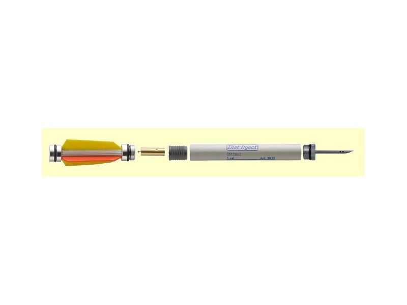 Strzykawka aluminiowa wielokrotnego uytku, w peni demontowalna, do aplikatorów kaliber 13 mm.