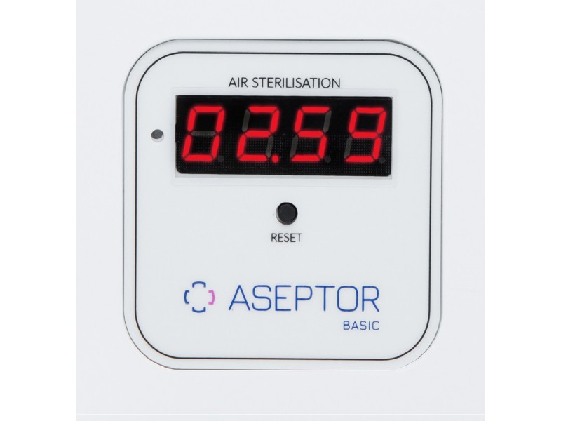 Aseptor Basic 236 M C posiada zaawansowany licznik czasu pracy promienników UV-C: