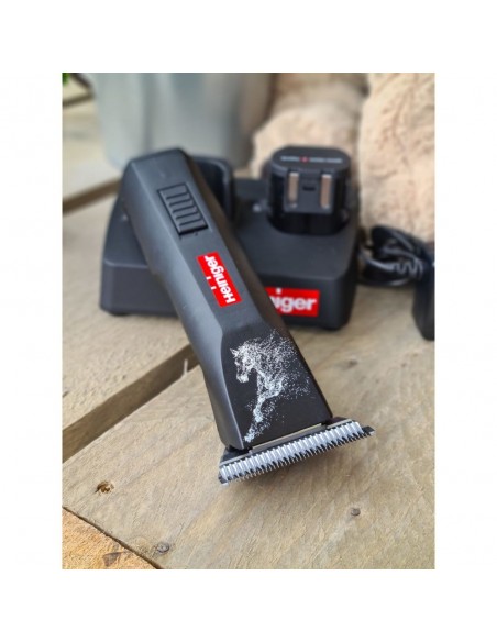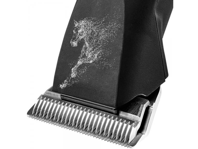 Profesjonalna maszynka bezprzewodowa z dwoma akumulatorami Henger Saphir Horse, została stworzona z myślą o goleniu koni. Całkowicie bezobsługowa tzn. nie wymaga smarowania i oliwienia żadnych wewnętrznych elementów. Posiada ergonomiczną obudowę, która jest odporna na uderzenia, natomiast włącznik z blokadą zapobiegającą przypadkowemu włączaniu, ułatwia jej używanie. Maszynka została fabrycznie wyposażona w szerokie ostrze 10WF (1,5 mm) o wyjątkowej trwałości stali, które zbiera za jednym razem więcej sierści, niż standardowe modele. Wśród zawodowców ten model uznawany jest za najlepszą bezprzewodową maszynkę do strzyżenia zwierząt. Umieszczona na stacji ładującej kontrolka LED wskazuje na stopień naładowania baterii. Unikalne rozwiązanie elektroniczne, pozwala pozbyć się tak zwanego efektu pamięci baterii. Dostępny w czarnej wersji kolorystycznej z nadrukiem konia. Maszynka zapakowana w solidną walizkę do jej przechowywania i bezpiecznego transportu. Kompatybilna ze wszystkimi ostrzami typu Snap-On, firm takich, jak: Oster, Andis, Moser, Wahl, Thrive itp. Produkt świetnie sprawdza się do golenia mniejszych obszarów oraz do wycinania różnych wzorów.