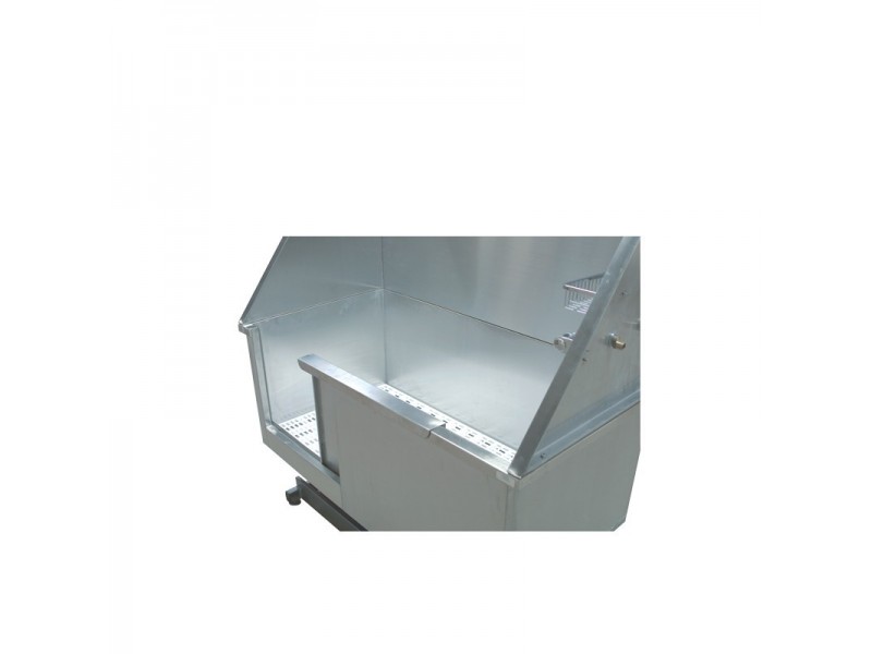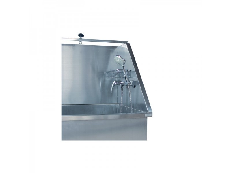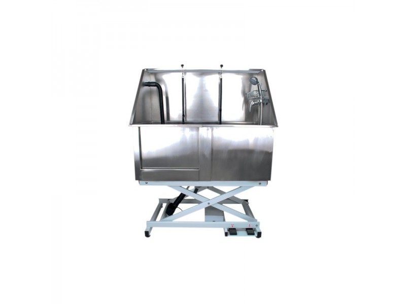 Profesjonalna, wanna groomerska Blovi podnoszona elektrycznie, wykonana ze stali nierdzewnej (typu 304). Niezwykle trwała i estetycznie wykonana. Wanna posiada rozsuwane drzwiczki, wysięgnik dwustronny do podczepienia psa, baterię wannową z prysznicem oraz uchwyt na kosmetyki. Łącznik umożliwia zamontowanie od boku węża od suszarek stacjonarnych/na stojaku. Odpływ o średnicy 45mm. Regulacja wysokości odbywa się za pomocą wodoodpornych nożnych pedałów.